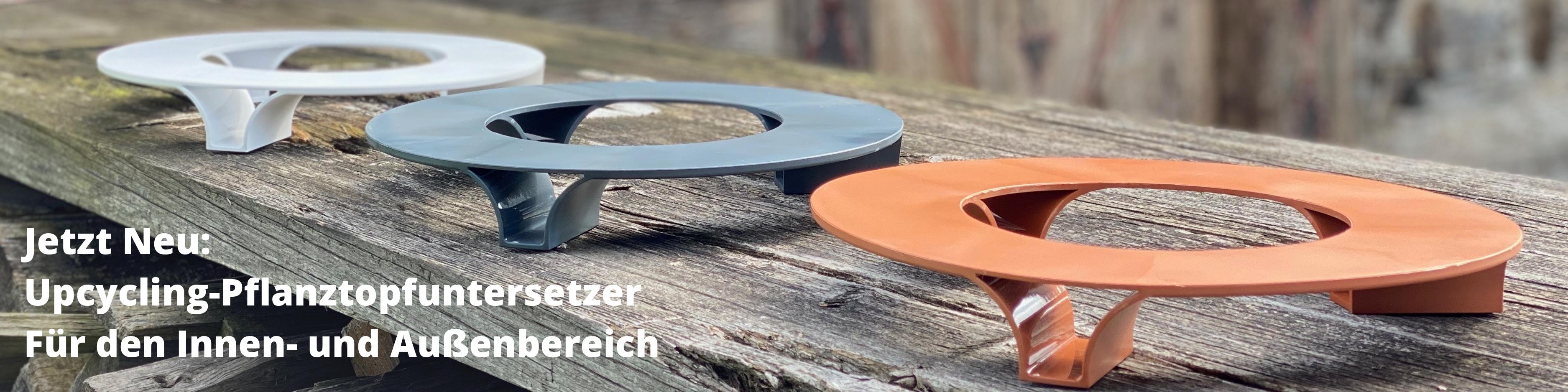 Upcycling: Pflanzentopfuntersetzer für Innen und Außen. Es werden Flecken, Staunässe, Stauwärme vermieden.